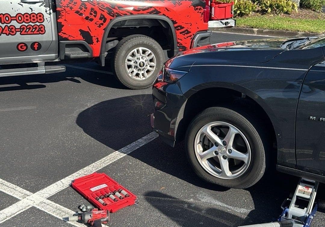 Flat tire? Our technicians arrive quickly to replace your tire with a spare or repair, keeping you moving without delay.